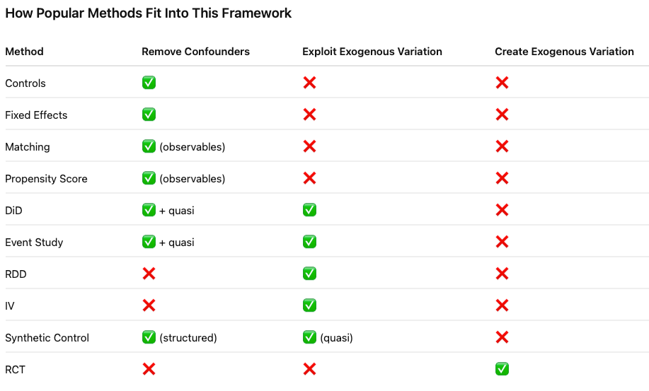 So, I will not go into the technical details of the identification strategies in this article. Instead, I will provide a link to my notes for reference. In addition to the notes, I have summarized papers that apply each identification method, primarily in service-related research.